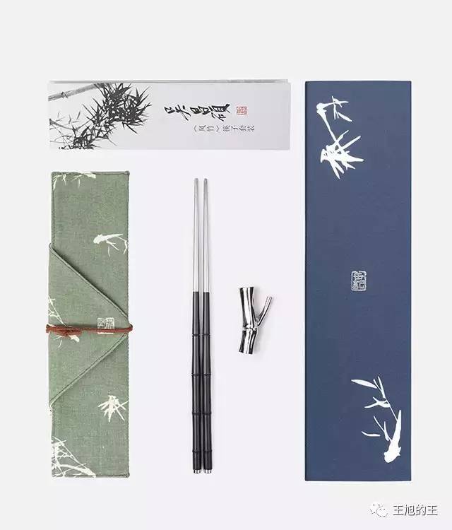 竹节筷从《风竹图轴》中截取竹子情态样貌的同时,还在每支筷子和每个筷架的顶端,都加了一枚黄铜镀银的“缶记”印章。每双筷子都有精致的礼盒包装。