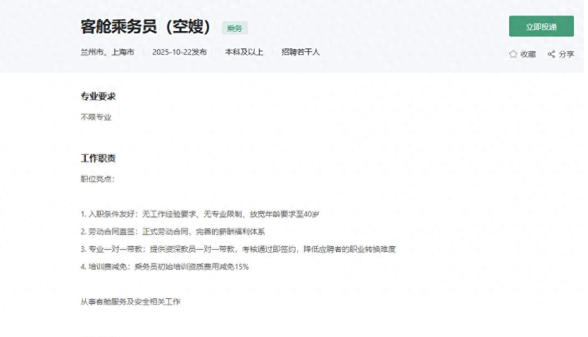 春秋航空招聘负责人曾在接受媒体采访中介绍,此举顺应航空业快速复苏趋势,满足就业多元化需求,预计招录30至60人,于2026年初启动培训,当年形成运行实力,为公司兰州基地和上海本部储备人才。