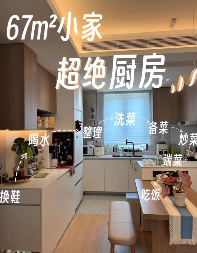 记住,动线一定要按照拿、切、炒的顺序来排列。台面高度可以分为切菜区和炒菜区,具体高度可以以身高的一半加5厘米或者减5厘米作为参照。如果还是不放心,那具体可以去线下感受一下。