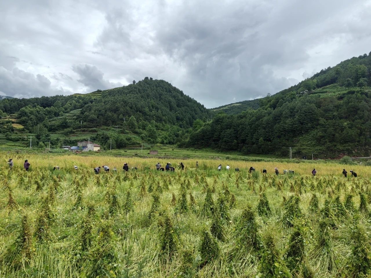 在尔曲村阿西阿叁承包的1800亩苦荞地里,40余名村民正忙着收割作业。大家手中的镰刀上下飞舞,一株株饱满的苦荞被迅速割下,随后被扎成小捆晾晒在田间,等待脱粒。阿西阿叁介绍:“今年我们种了1800亩苦荞,目前正是丰收的好时候,每亩产量大概400斤,现在苦荞价格每斤在2.6元左右。等苦荞收完,我们打算利用土地种植大葱,提高土地利用率,增加更多收益。”